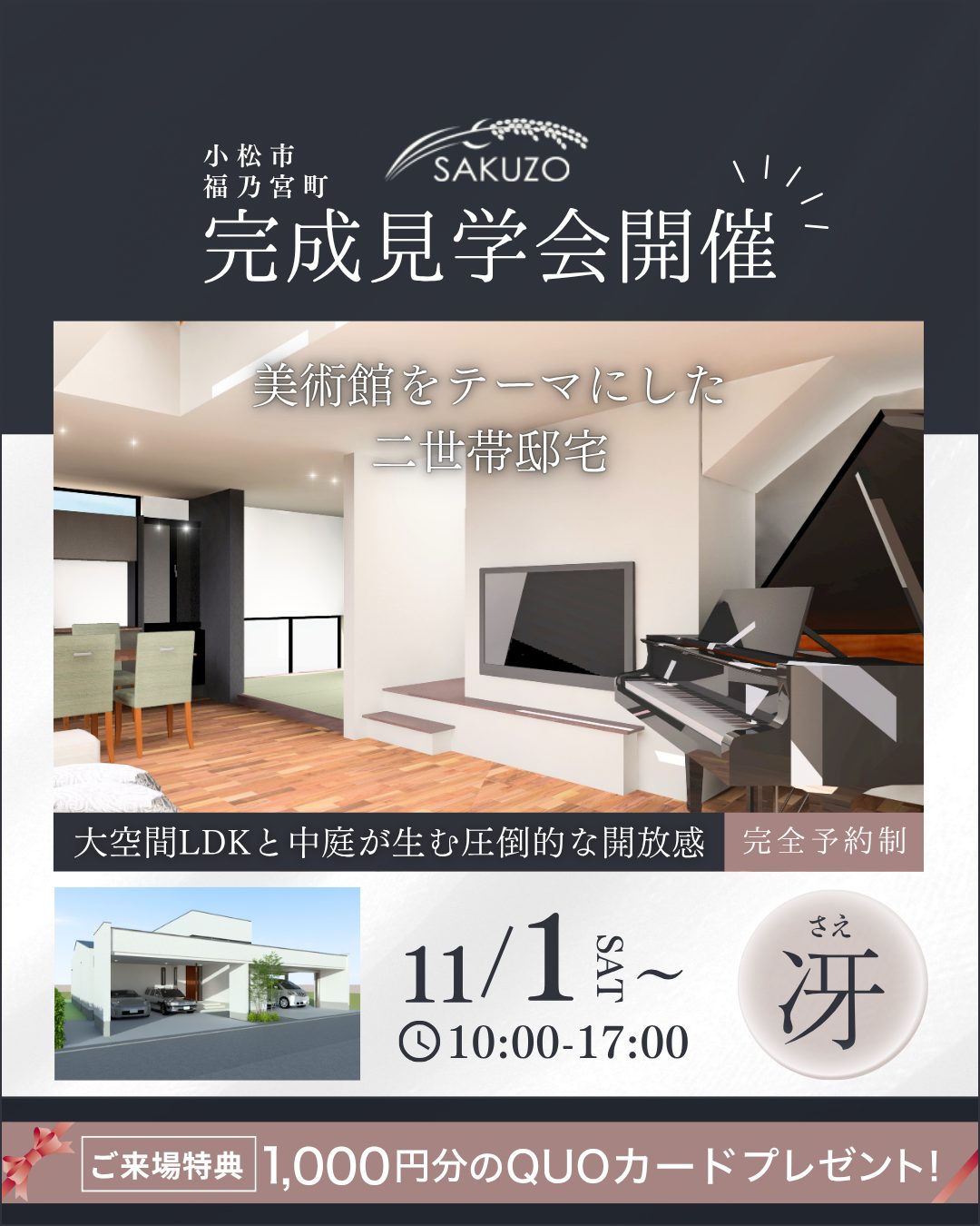 【石川県 小松市 】完成見学会 *美術館をテーマにした二世帯邸宅*